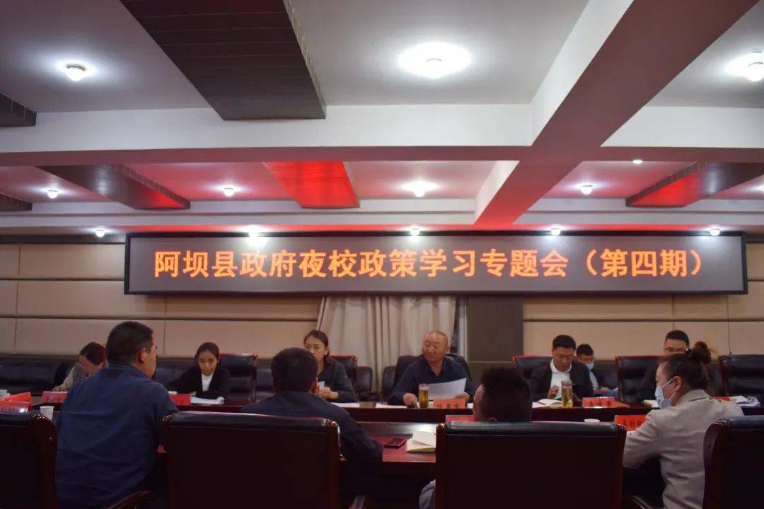 为全面摸清吃透上级政策支持方向,用好用活政策,从中发现机遇、抢抓机遇、创造机遇、用好机遇,牢牢把握发展主动权,全面提升发展质量水平阿坝政府。近日,阿坝县以“摸清家底”活动为契机,按照“提高理论素养、增强执政能力”的基本要求,紧扣高质量发展目标,利用下班时间,连续举办多期由政府牵头、行业部门参与的夜校政策学习专题会,县政府副县长和组成部门参加学习。