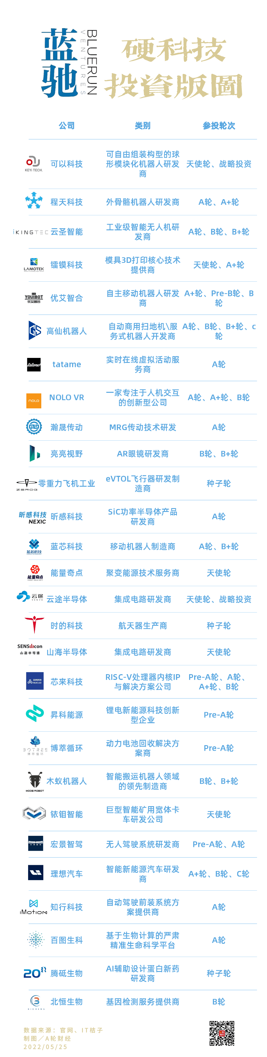 (蓝驰创投部分硬科技投资版图蓝驰,制图/A轮财经)