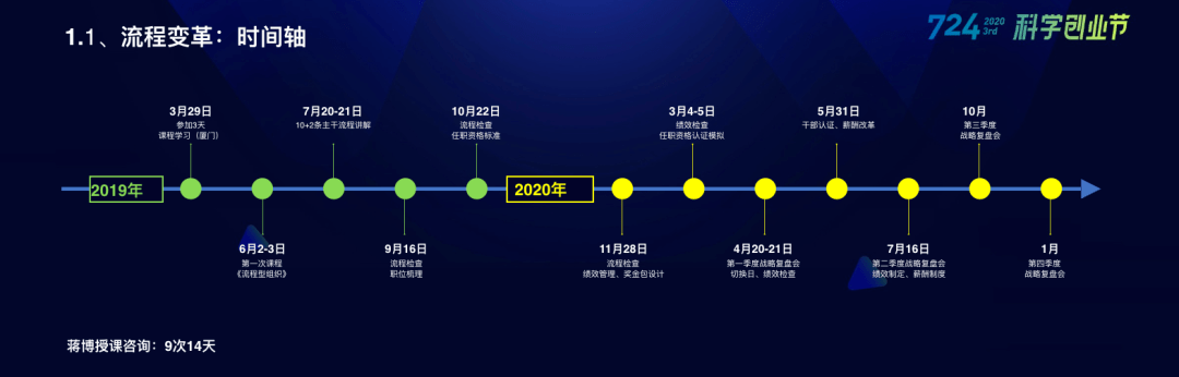 我们从2019年6月2号做第一次流程型组织变革,给大家看看我们变革的时间轴,大概可以看出我们做了些什么袁地保。