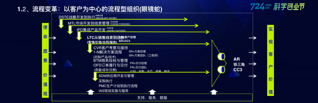 这是我们流程型组织变革的核心思想,使命、愿景、价值观决定我们的客户,客户决定流程,流程决定职位,职位决定任职资格,任职资格决定人力资源,实现流程闭环,最终实现客户价值,持续为客户创造价值袁地保。