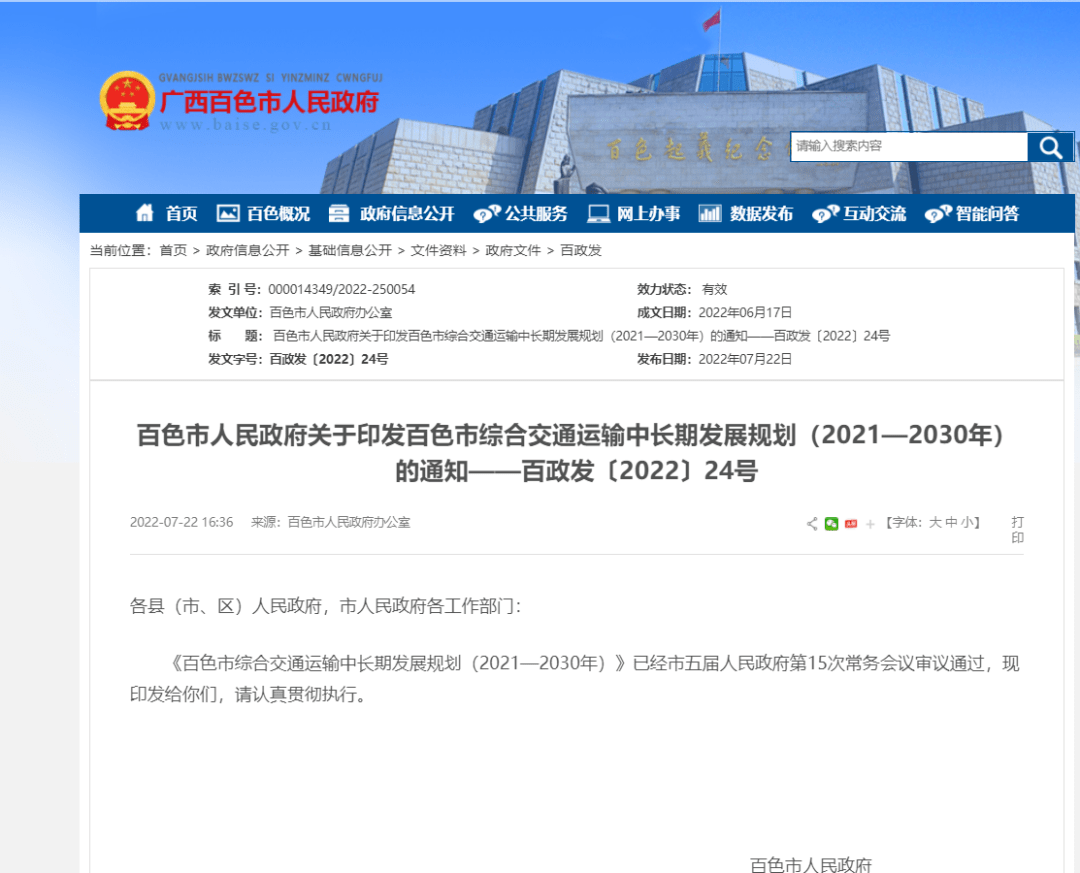 百色至东盟国家北部主要城市3小时通达,至左右江革命老区主要城市2小时覆盖,百色中心城区至县(市、区)1小时通达,县级行政中心至乡镇2小时通达,都市区2刻钟通勤右江矿务局。