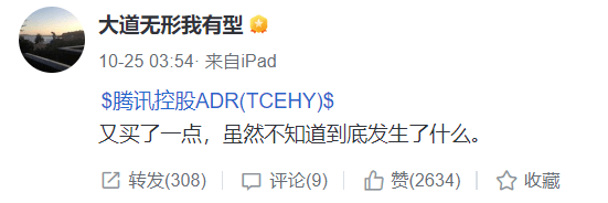 而在本周一大跌当天,段永平在雪球上表示自己加仓了腾讯: “ 又买了一点,虽然不知道到底发生了什么中国互联网新闻中心。”