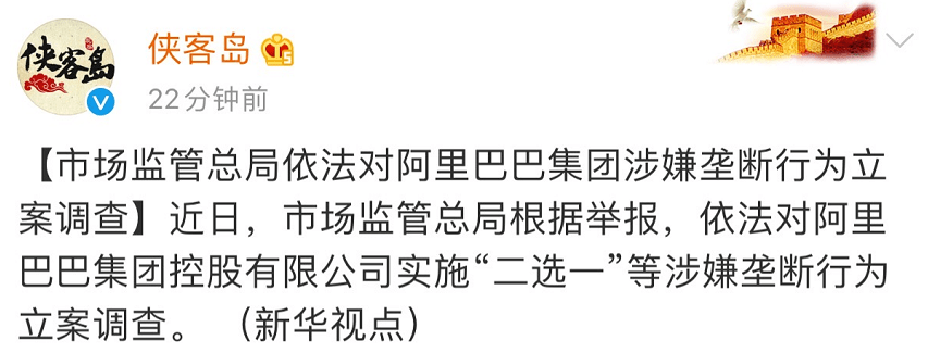 当年 12 月 24 日,市场监管总局对阿里巴巴集团涉嫌垄断行为进行了立案调查中国互联网新闻中心。