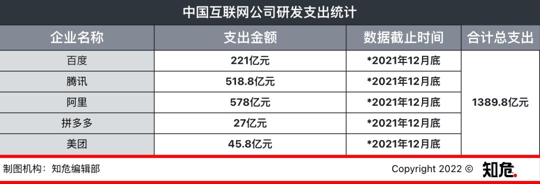 除去经济,互联网公司也对新技术的研发产生了部分作用,根据各家公司 2021 年年报,百度的研发支出为 221 亿,腾讯有 518.8 亿,阿里有 578 亿,拼多多有 27 亿,美团有 45.8 亿, 一旦有突破,受益的最终还会是社会中国互联网新闻中心。