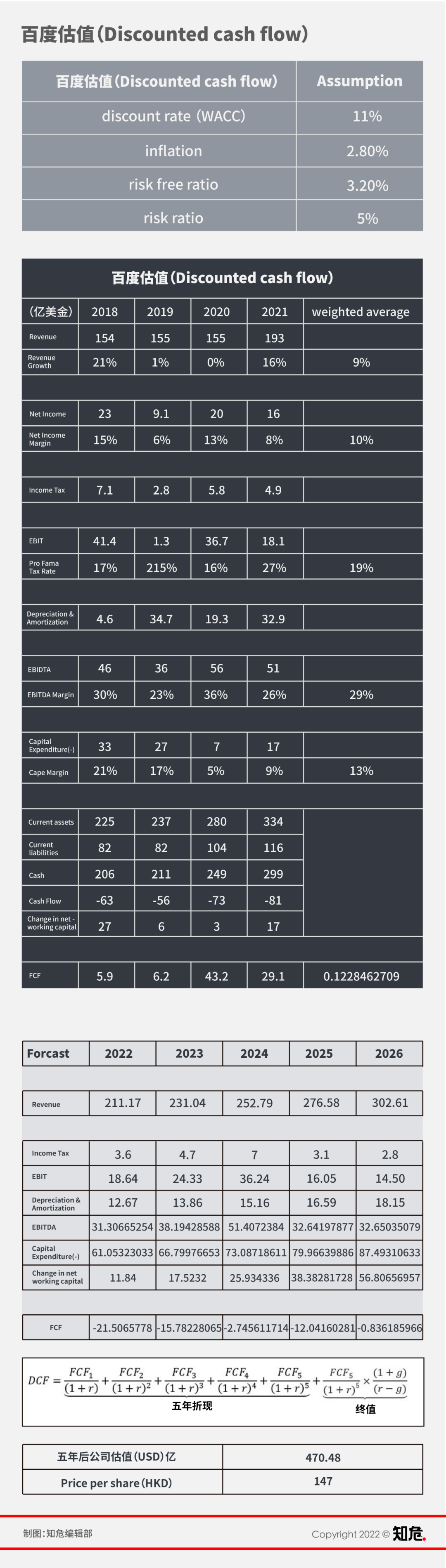 我们计算出百度在 5 年后的股价应为:147 港元/股中国互联网新闻中心。