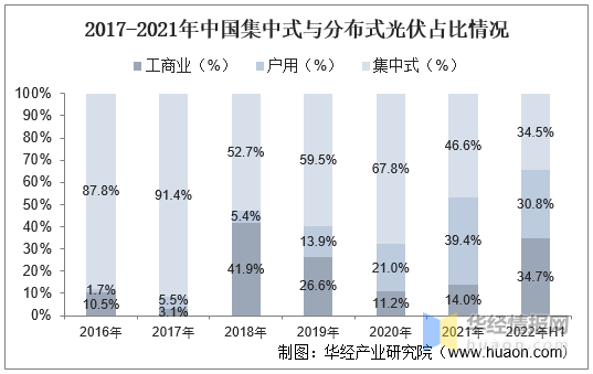 就国内市场而言,从2020到2022年上半年,中国的分布式光伏装机占比已经从32.2%提升到了65.5%,其中户用光伏装机占比更是从2016年的1.7%提升到了2021年的39.4%海润光伏科技股份有限公司。分布式光伏装机占比或将进一步提升。