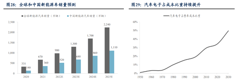 全球新能源车渗透率快速增长,中国市场占比持续提升,并保持在 40%以上,汽车新能源化、智能化、信息化等趋势下,汽车电子占成本比重将持续提升,随着车载信息系统、车身系统、动力系统、安全系统等搭载更多各类电子元件,线路板的用量及规格也将持续升级深圳东山精密。