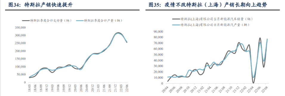 2018Q1,特斯拉产量和交付量为 3.45 和 3 万辆,2022Q2 分别实现 25.86 万辆和 25.47 万辆,四年多时间实现 7 倍以上增长深圳东山精密。同时特斯拉(上海)的产销同样也快速提升,“本土化”策略彰显成效,尽管受到上海二季度疫情的影响,产销有较大幅度的下滑,但随后快速修复,2022 年 6 月销量为 7.89 万辆,达到了历史新高,2022 年 8 月产能为 7.66 万辆,同样创下了历史记录。