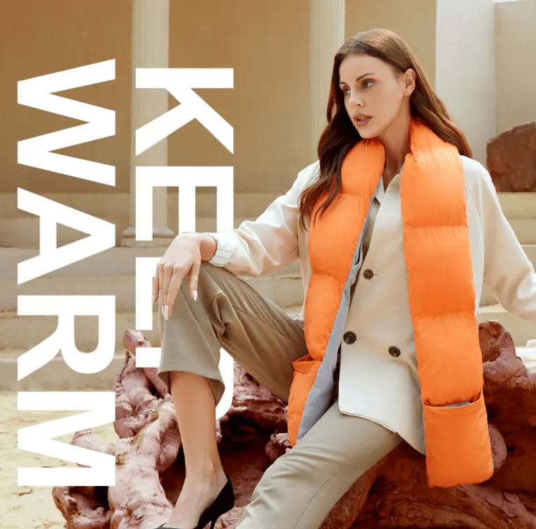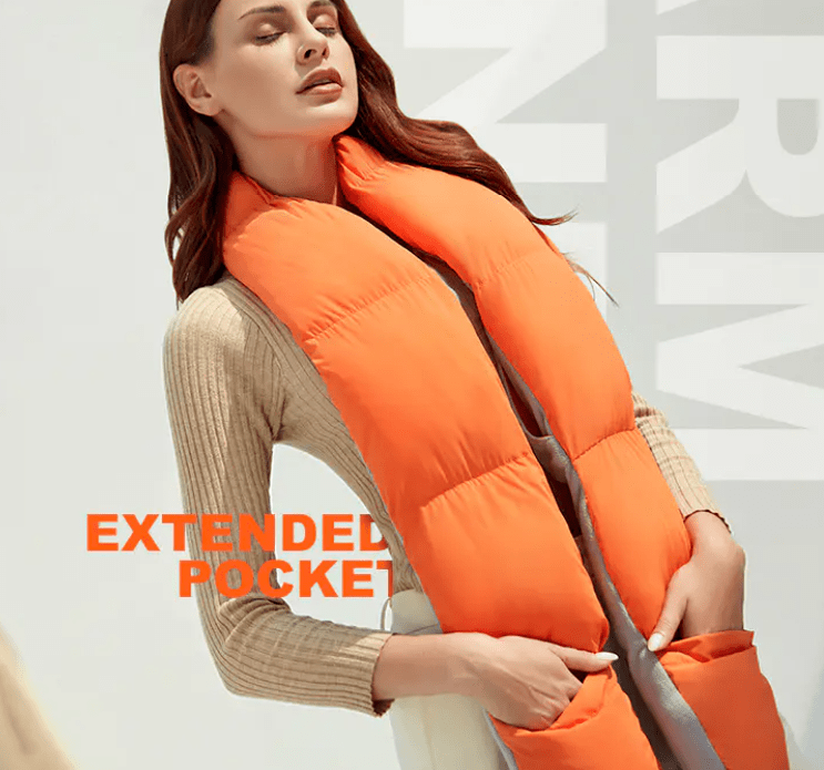 轻盈不勒颈的Coplax智能电发热围巾, 高蓬松鹅绒填充 , 拥有智能发热系统,3秒速热3档调温,还能脉冲按摩理疗摩迈。