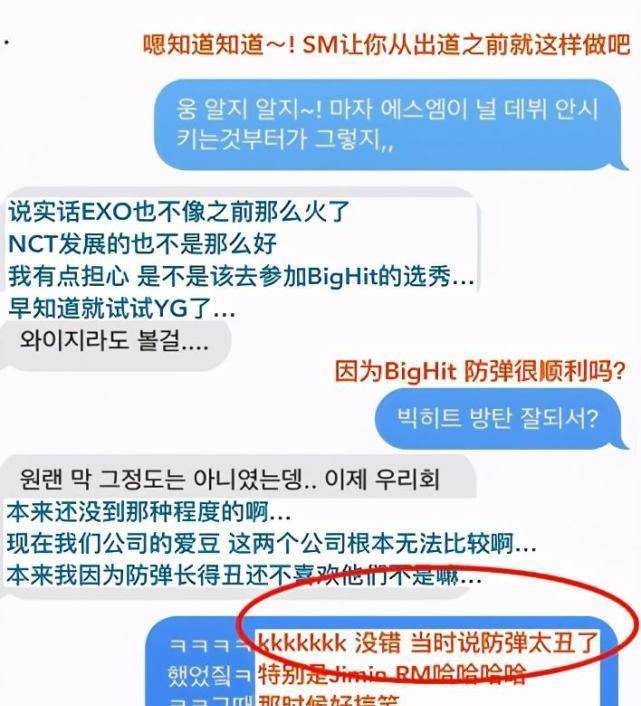 柳智敏被传是新女团的预备成员,原本大家都是看个热闹,但是之前柳智敏和朋友的聊天记录曝光,其中一直在吐槽,说EXO已经不火了,还有BTS的成员太丑,以及对粉墨等著名的前辈进行批判sm工具。