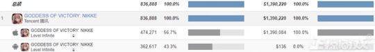 同时,从Sensortower给出的全球下载数据与氪金量的统计来看,《Nikke:胜利女神》在预下载有50万用户的情况下,在上线3天仅获得83万下载量,赚得140万美金的数据,也略细寒酸了。