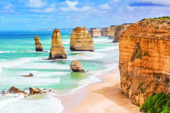 十二使徒岩是位于澳大利亚南部海岸的一系列海蚀崖,因为来自南大洋的强大波浪不断冲击,侵蚀了大陆上的石灰岩悬崖而形成。