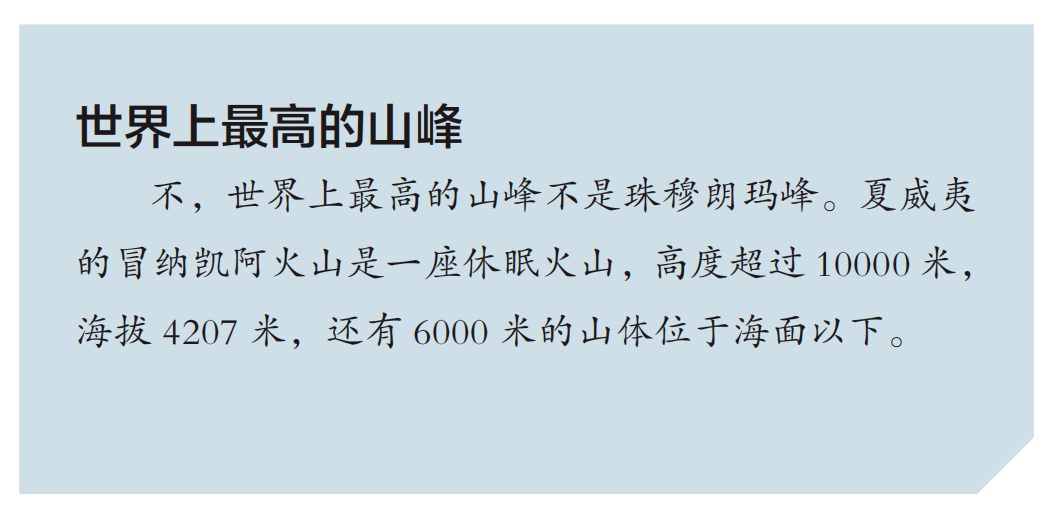 此外,图书中还会出现一些便利贴条的知识点,讲解一些有趣的冷知识,比如,突然消失的湖泊,世界上最高的山峰,世界上最潮湿的地方等等,给阅读增加趣味,也可拿来跟其他“拷问”身边的小伙伴。