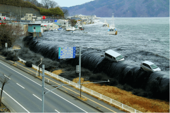 2011年3月11日,日本东北部发生9.1级地震后,海啸没过宫古市附近的海堤。