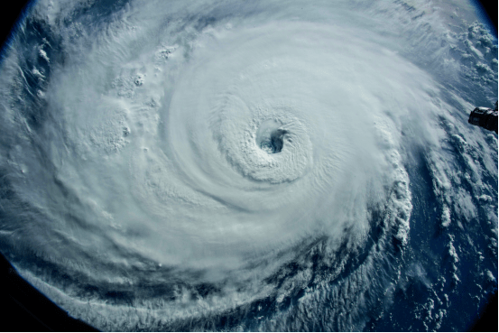 2018年9月12日,从国际空间站上观察到的飓风佛罗伦萨横跨大西洋,并在美国弗吉尼亚州形成了10场龙卷风。