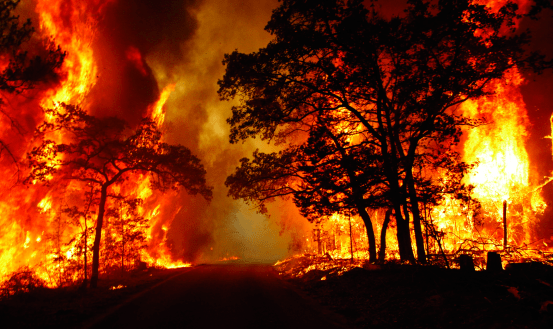 2011年9月,大火吞噬了巴斯特罗普州立公园附近的一条公路。不断攀升的温度导致野火的发生频率和强度都在增加。