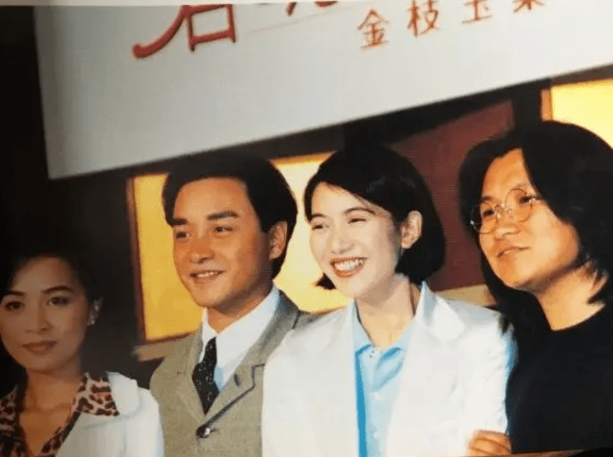 ▲宣传《金枝玉叶》期间,左起:刘嘉玲、张国荣、袁咏仪、陈可辛。袁咏仪和哥哥的好交情也是源自这部电影。