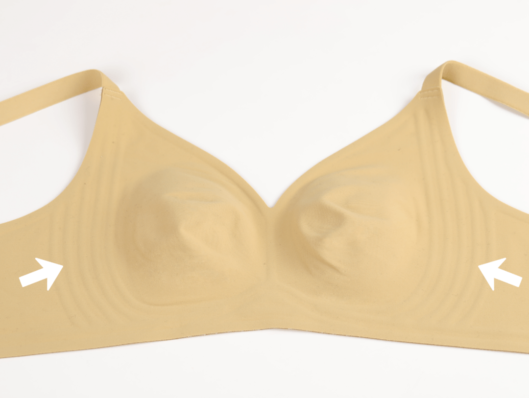 这款内衣的果冻条软支撑,延伸到了侧翼,“包围”了整个胸垫外侧。