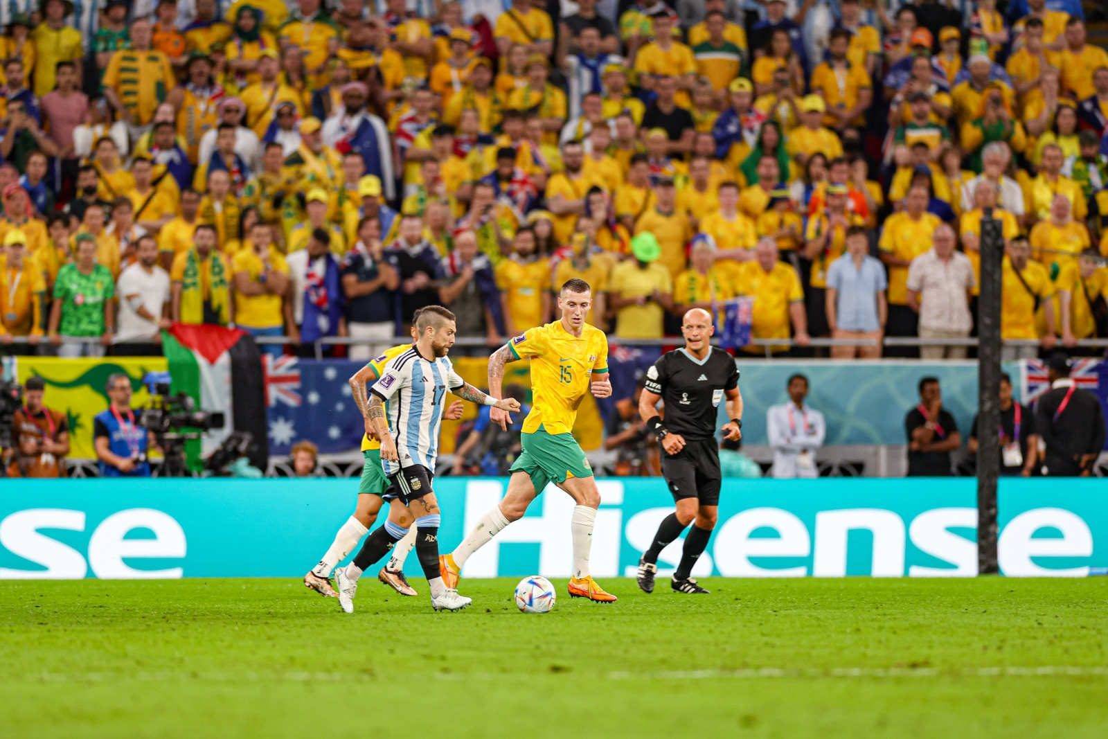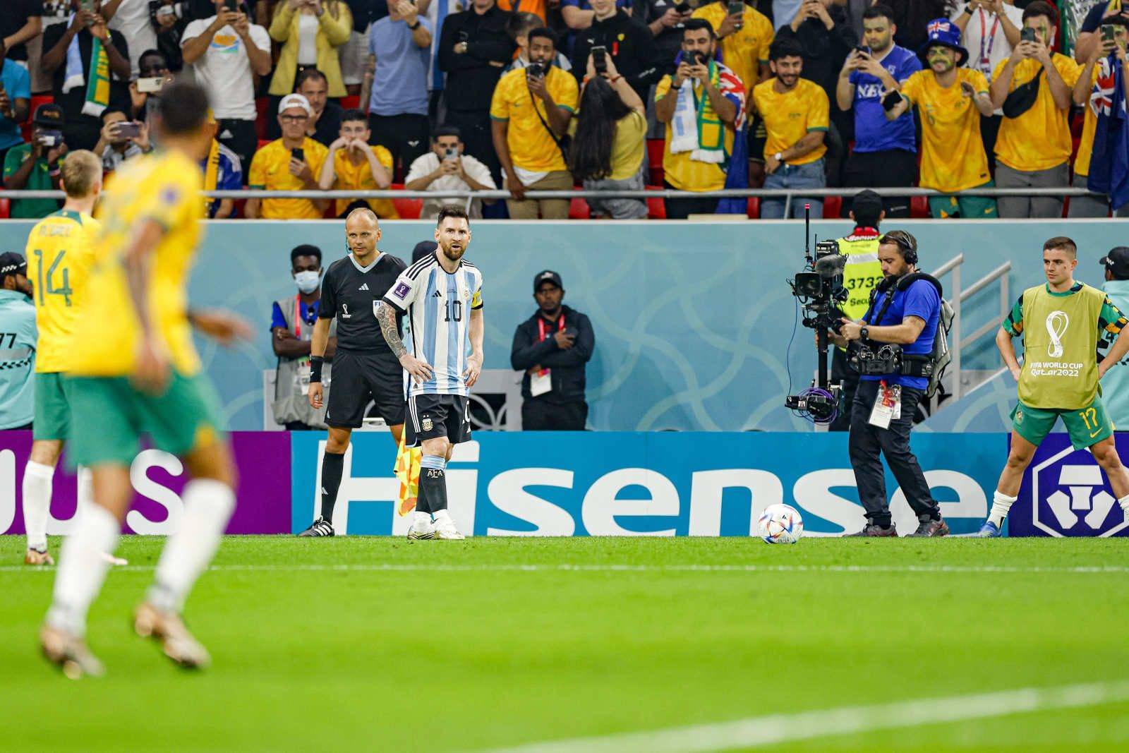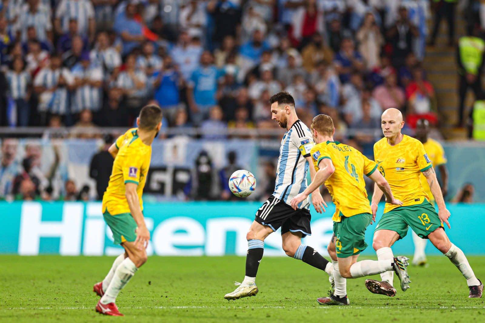 12月4日,在世界杯八分之一决赛上半区的一场比赛中,阿根廷2-1淘汰来自亚足联的球队澳大利亚。在这场比赛中,梅西迎来了自己的千场里程碑,并在上半场比赛中打入了自己的世界杯淘汰赛首粒进球;下半场阿尔瓦雷斯扩大比分,恩佐乌龙球,最终阿根廷笑到了最后,在四分之决赛中,他们将对阵荷兰队。