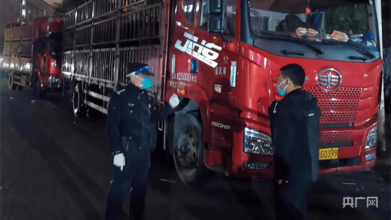 指导货车有序进出装卸货(央广网发 重庆市公安局供图)