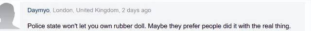 有意思的事情来了:在英国,持有儿童淫秽照片的行为是违法的,然而购买以及持有充气娃娃(无论其是何种造型)、和充气娃娃发生“性关系”(无论其是何种造型)却并非违法。