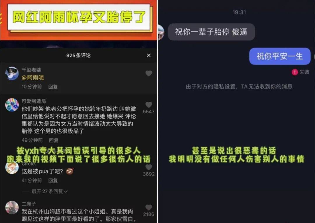 今年元旦期间,她自爆和老公吵架后被丢在路边,主动道歉后对方才回来接她。半个月后她第二次胎停,两件事被部分账号联系在一起,引导网友认为是丈夫的抛弃导致她流产。