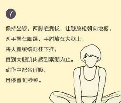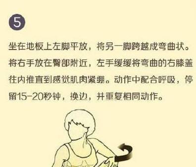 1,端坐在平坦地方,一只脚伸直,另一只脚像跷二郎腿一样向上尽量弯曲,可以借助手臂力量往上方抬,保持十五秒钟并配合呼吸。