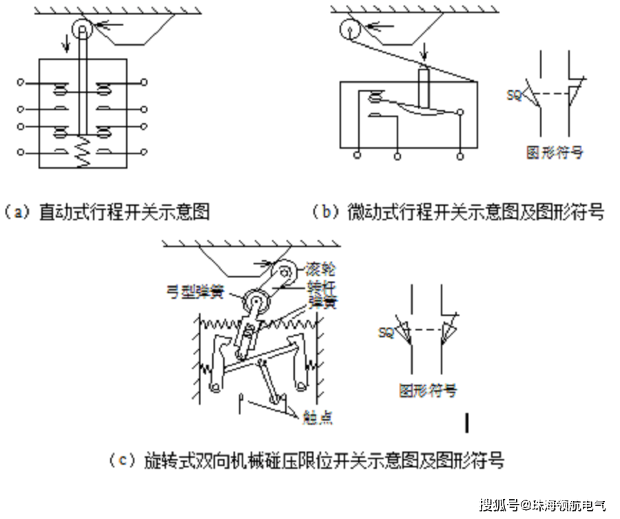 下图所示为几种操作类型的行程开关动作原理图以及图形符号:
