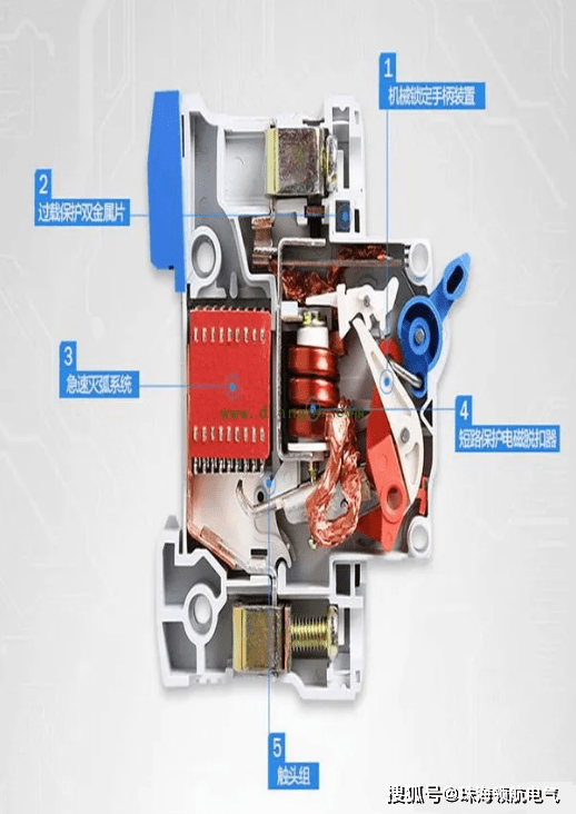 以塑壳断路器为例,其由3个部分构成:触头、灭弧系统、脱扣器。脱扣器又包括过电流脱扣器、失压(欠电压)脱扣器、热脱扣器、分励脱扣器、自由脱扣器。
