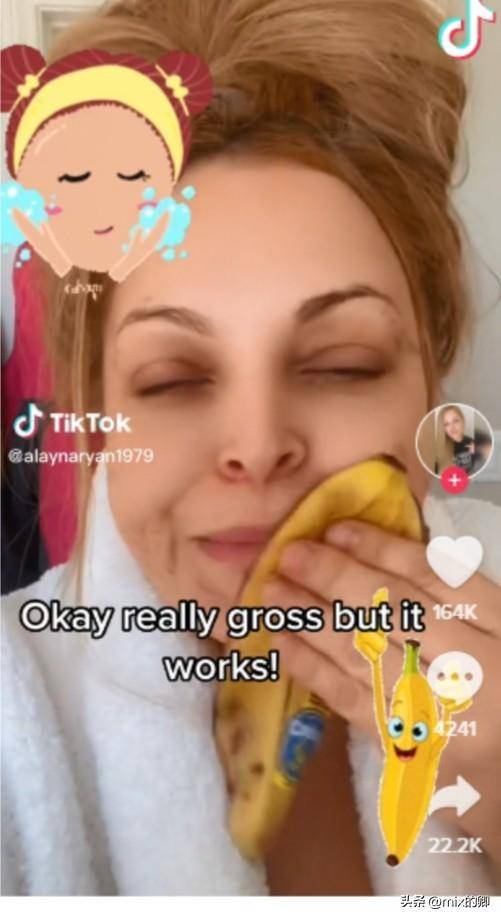 近日,国外一社交平台上有一种新型的美容方式爆火,据说效果堪比肉毒杆菌注射,且物美价廉。很多博主在平台争相模仿。根据该博主的这方法,就是把香蕉皮往脸上涂,而且越老越皱的香蕉皮,效果越好......