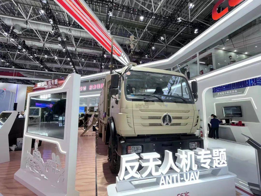 同时,一款名为“天穹”综合反无人机作战体系受到众多参展观众和媒体的关注,其中该体系中展出的超短波侦察测向干扰车所采用的是北奔重汽高机动越野汽车底盘。该底盘具备承载能力强、可靠性高、环境适应能力强等特点。