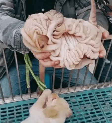 有一位网友有着非常好的经济条件,就想养只狗狗来陪伴自己,于是一大早就跑到贩狗的市场瞧一瞧,看了好几家都没有遇到心怡的,因为他想买一只很特别的,正打算走的时候却看见面前在睡觉的沙皮狗,男子很是好奇,他很少见到这样的狗狗,因为大多数人养的都是泰迪、金毛和哈士奇等宠物狗。