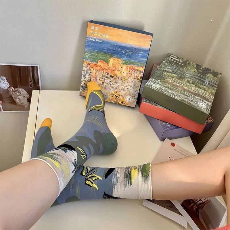 “梵高&莫奈两位大师的名画袜系列袜子”