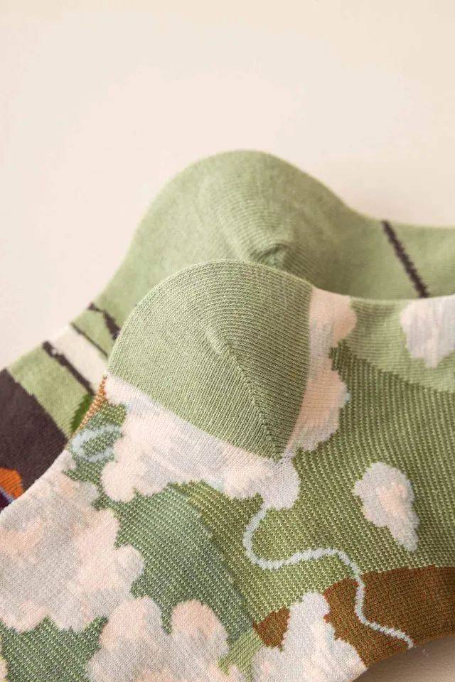 梵高和莫奈系列袜子采用先进的缝合工艺,每一针缝合都均匀对齐,并且会去除多余线头,仿佛手工制作般平整细腻。