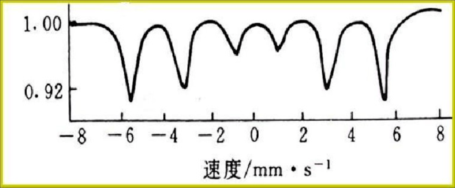 4.在矿物学中,通过对大约 300多种矿物进行穆斯堡尔谱测试,得到了大约 4000多组矿物的穆斯堡尔谱数据。早期,主要用穆斯堡尔谱来确定矿物中铁的氧化态、电子组态和有序-无序分布,矿物的固相反应。近年,已经用穆斯堡尔谱来分析矿物成分和四极分裂和内磁场之间的关系。
