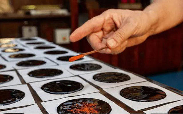 此操作,主要是下降过敏率。目前具代表性的去“火毒”办法有水浸法、喷水法、喷水浸渍法及炸水法,以上诸办法中,以喷水法去“火毒”最省时省力,运用该法在喷水时,拌和方向与下丹时相同,这是由于油脂的氧化,聚合及脂肪酸铅盐的反响过程受拌和方向相同的影响。下丹重点要注意比例还要手法。一般按每500克油195克丹,也就是16:7。下丹分火上下丹和离火下丹两种。