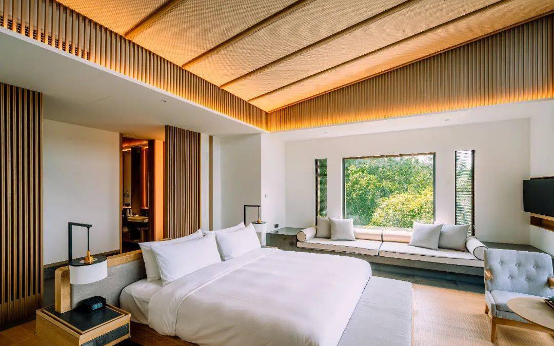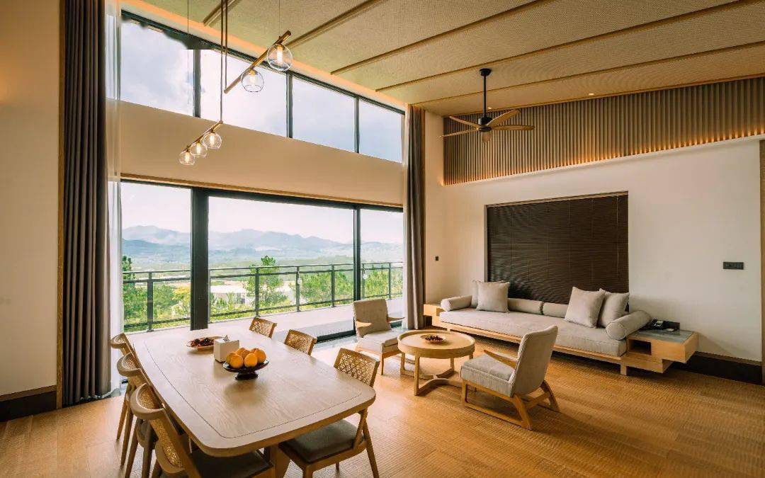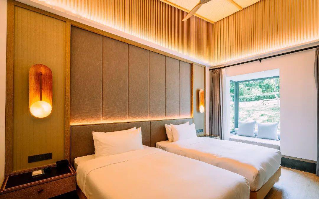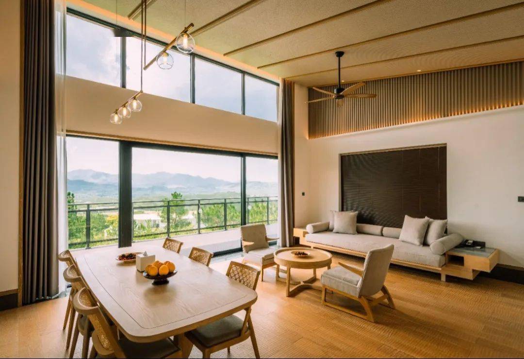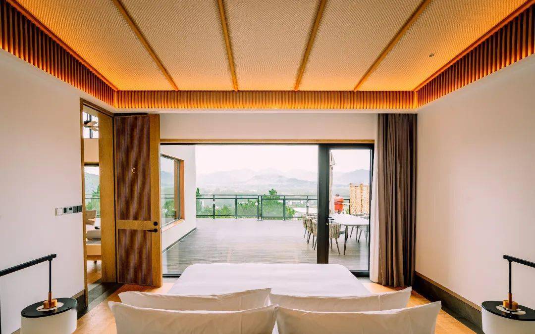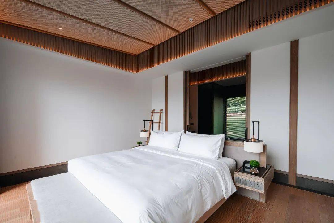 度假村共有113间高端奢华别墅 ,均临建于一定高度的山中,拥有一览竹海/茶园/云湖三种景观的视野!每一间客房,甚至每一扇窗户,都有着不同的景致。