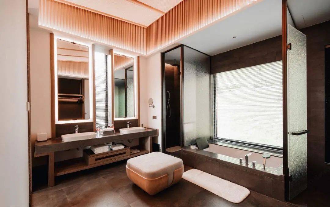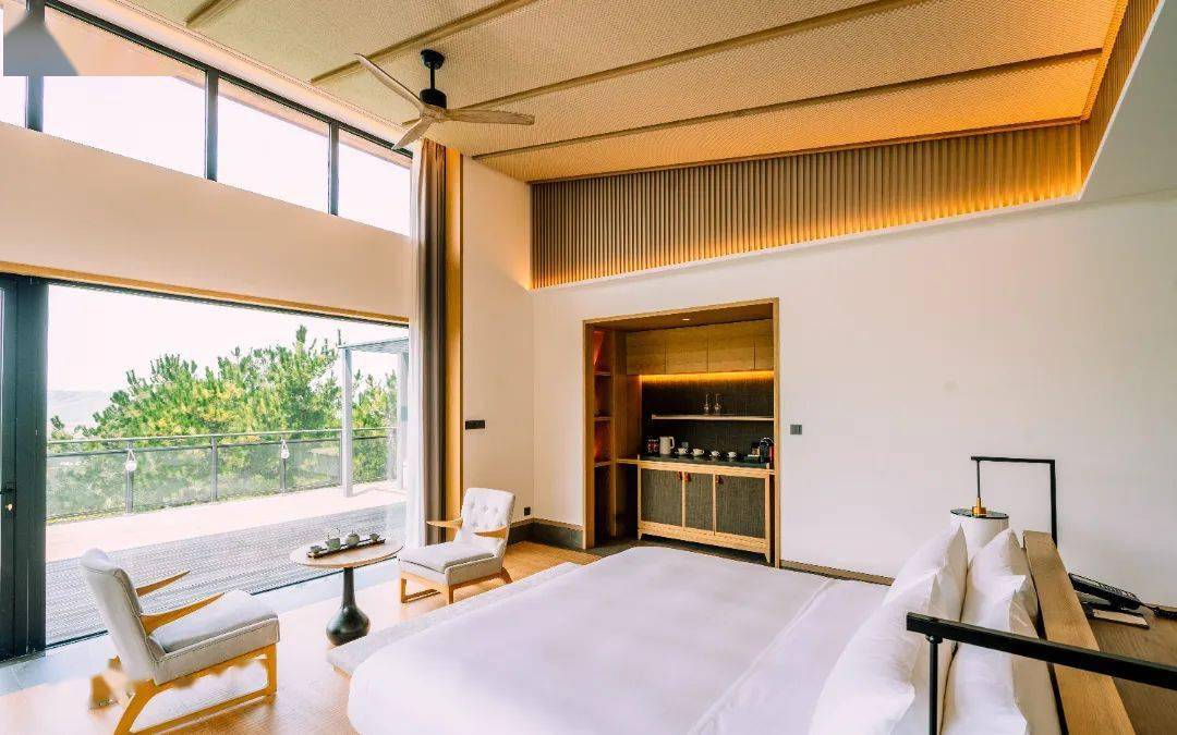 酒店在每个房间里放上了蒸箱,采用古朴的蒸茶取香的方式给房间增香,简单的奢华让身心完全放松。一面墙体都采用落地窗设计,打破室内外界限,推开房门就可以“扑进自然的怀抱”。