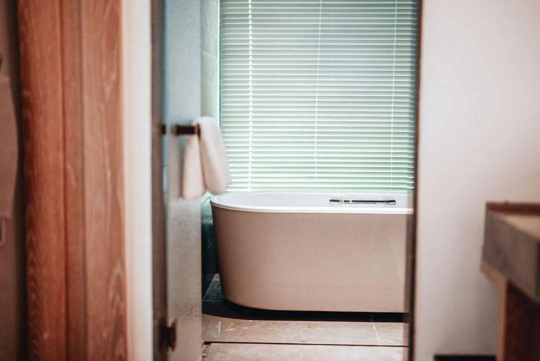 每间别墅都自带浴缸,配搭斯林百兰的床垫、全套洗护套装、全鹅绒的枕芯被芯、丰富mini吧。