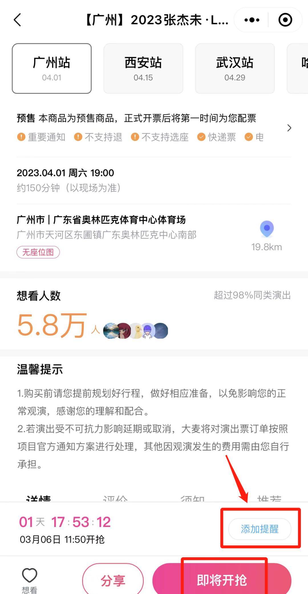 温馨提示:想要参加这场演唱会的小伙伴们,也可以提前进入购票,并设置购票提醒,以免错过购票时间哦~
