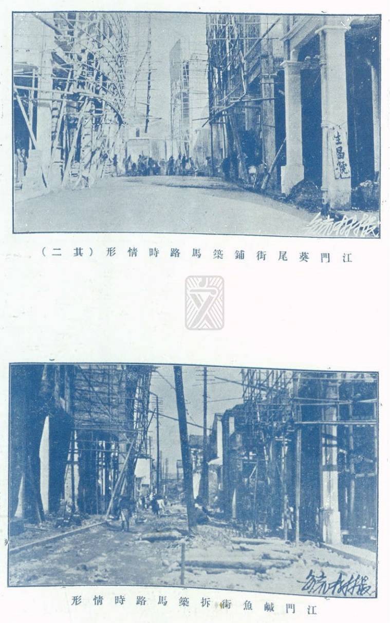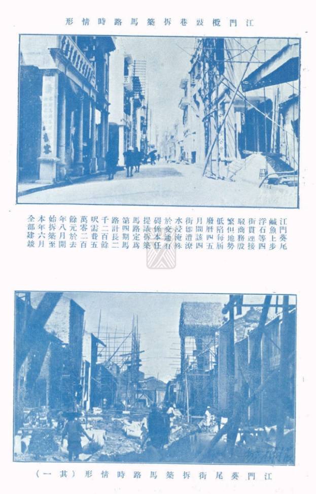 1930年代江门老街改造时的情形,这次改造奠定了之后骑楼老街的风貌。《新会建设特刊》,1933年。