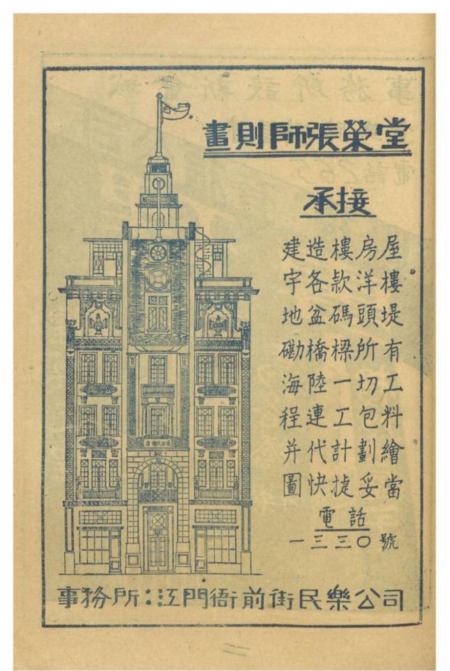 当时建筑师所刊登的广告。《新会建设特刊》,1933年。