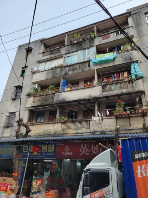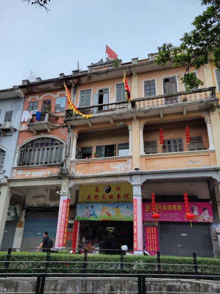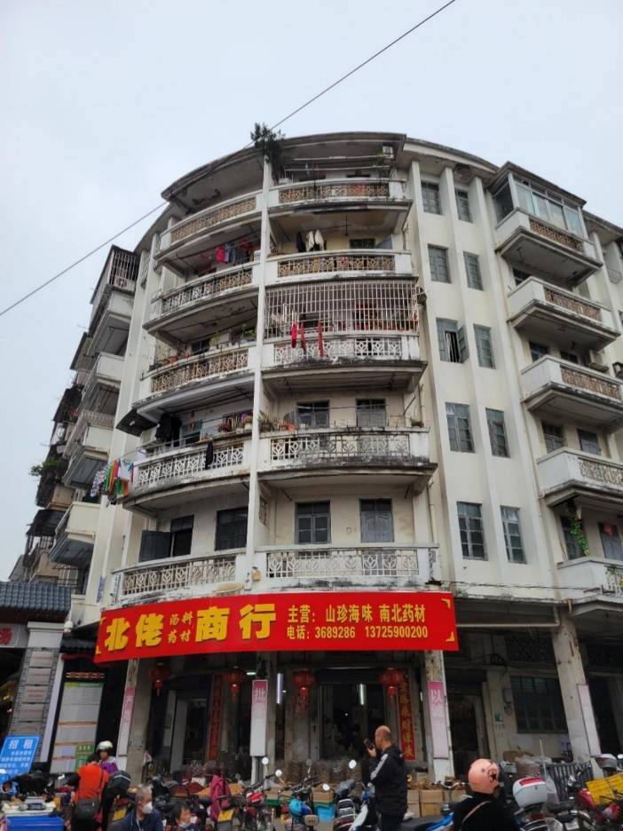典型的上世纪五十到七十年代兴建的住宅建筑,其高度与原有骑楼相似,底楼亦为骑楼商铺,二楼以上仍为住宅,阳台栏杆装饰图样具有时代风貌。蔡炯昊摄