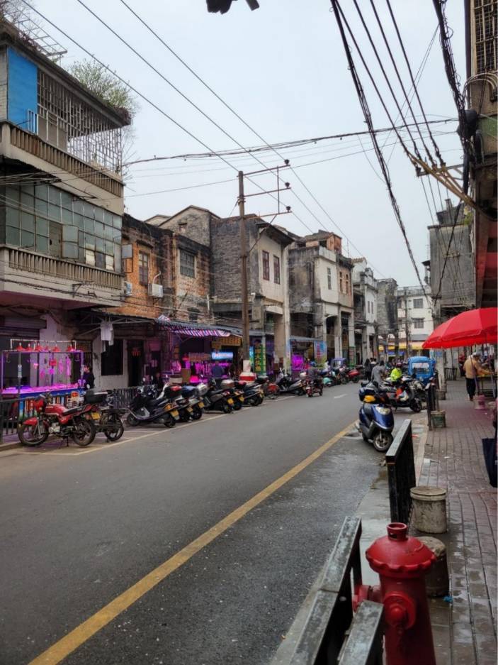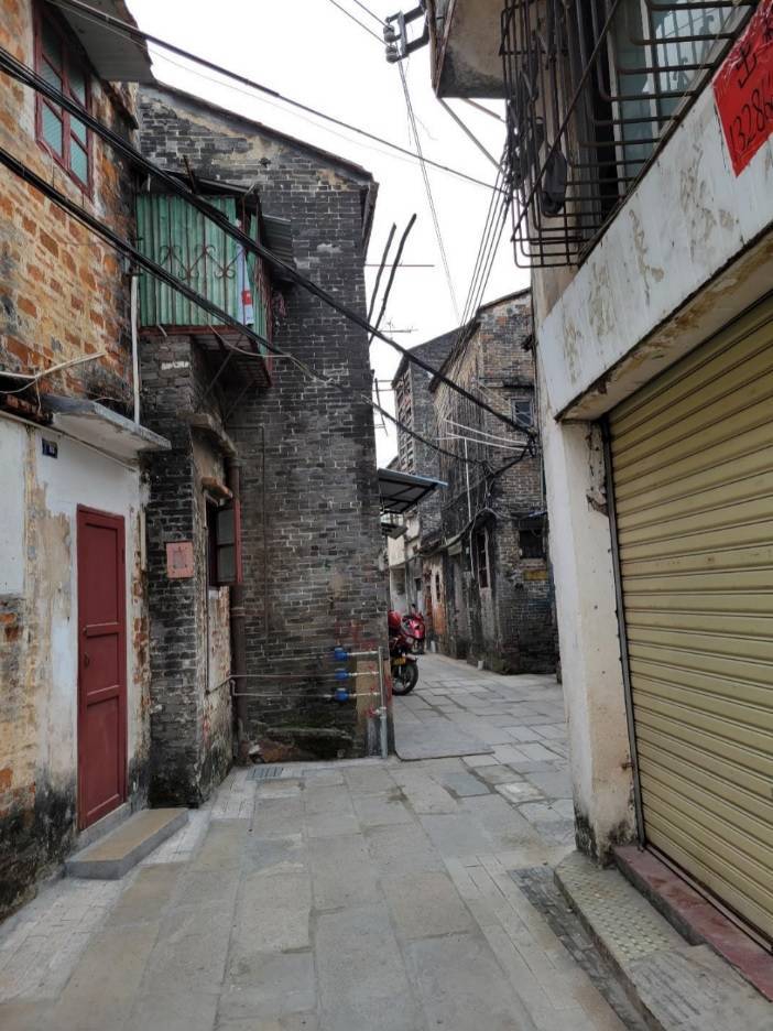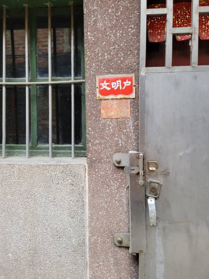 除了主要道路之外,是如同毛细血管的背街小巷。如同前面说到的,背街小巷的建筑大多并非带有拱廊,底层作为商铺的骑楼,而更多是传统民居,虽然有少数店铺开设在其中,但比例不高。相对而言,民居建筑的维护状况也比临街骑楼要差,有些已经成为危房,墙体坍塌,仅剩屋架,有些则正在拆除重建。从现有建筑的状况来看,尚有不少居民生活在其中,老年人多为本地人,但不少中青年人并不讲粤语,似乎是外来务工或经商人员在此租房。另外, 部分民居建筑上所挂的“文明户”铭牌,让我想起近代以来“文明”一词的含义在中国的复杂流变过程,此处的“文明户”大约指“讲卫生、懂礼貌、守秩序”之意,只是从各种加固的金属防盗门和护窗来看,这个片区居民的防盗意识要超过临街的骑楼片区。简·雅各布斯曾经在她的成名作《美国大城市的死与生》中指出过,熙熙攘攘的街道比空无一人的寂静街道更安全,因为在众目睽睽之下,许多治安案件不会发生。但是,当一个街区的建筑开始老旧,产业也开始转型,原来的居民逐渐搬离之后,这个街区的人气将如何保留呢?是否只有士绅化改造才能使这些衰颓片区重生?我不得而知。