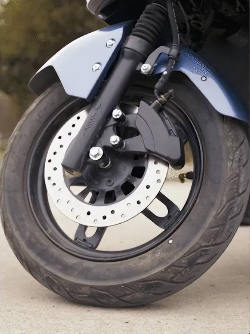 前后双碟刹制动,让每一次制动都十分从容。在30km/h、40km/h、50km/h时速下的轻刹和重刹测试中,该车次次都在预期范围内停车,安全感十足。与此同时,比后轮要大一圈的12寸钢铝前轮,也进一步优化了车辆的操控和刹车性能。