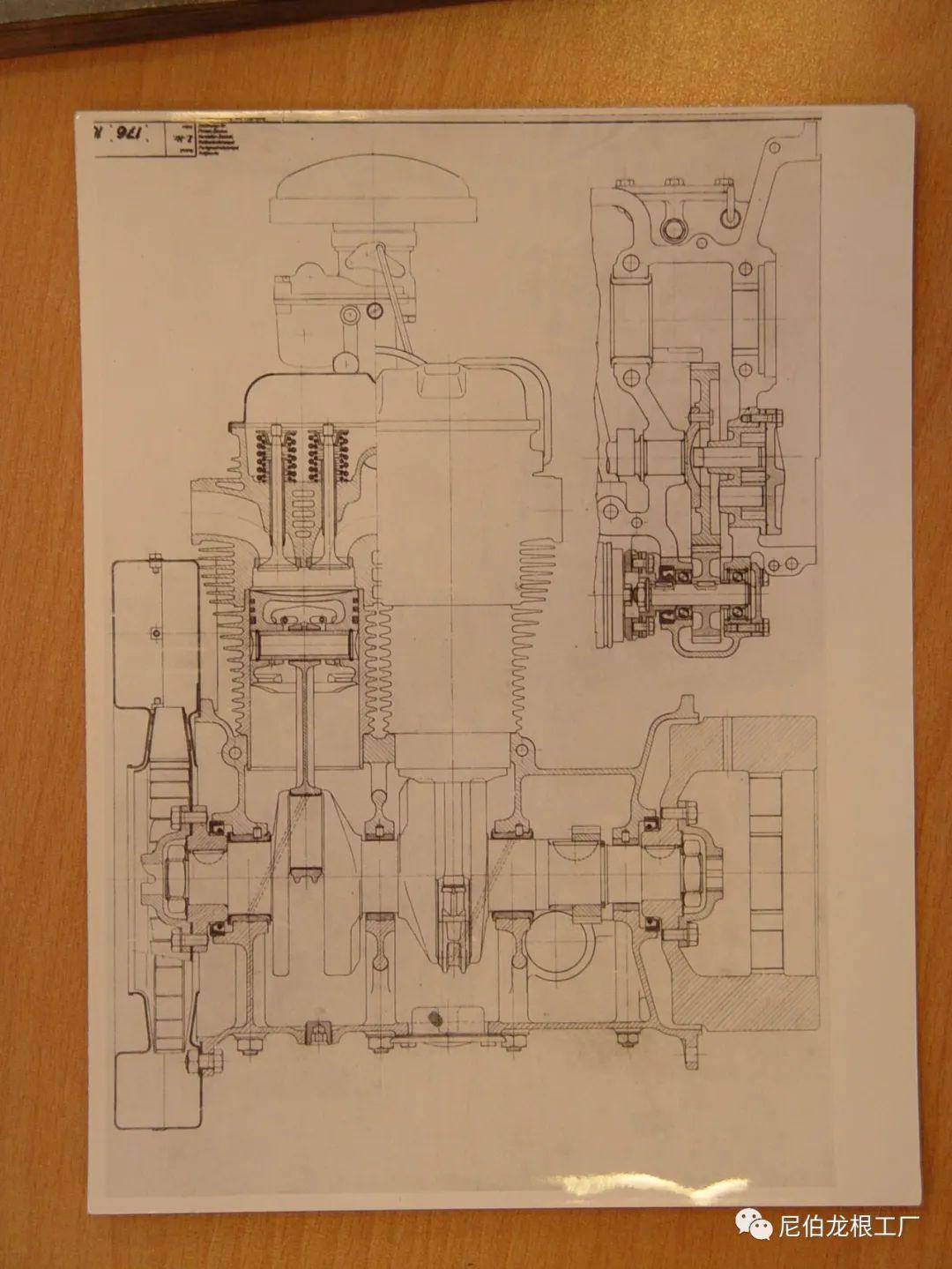 拆去离合器总成和变速箱的KHD F4L发动机,这一台的辅机已经安装到位,主发动机前端类似于鼓风机的物体是辅机的散热装置和飞轮,有风道通向后面的驾驶室。辅机有传动杆和主发动机飞轮位置相通,用于进行惯性启动。