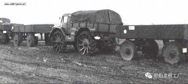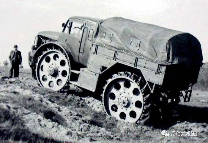 汽车厂商和设计室没能解决的难题最终被党卫军设法破解——1941年冬天,党卫军帝国师的官兵把英国卡登-洛伊德轻型装甲车的行走装置“嫁接”到了普通的4x2卡车上面,创造出了一种简易半履带卡车,它们在冰雪路面和崎岖地带能够发挥出可观的机动性。经过优化设计,几家汽车厂商开始批量生产类似的半履带卡车,这种车辆被称为“骡子”(Maultier),既可以用来运货,也可以用来拖炮,成本也十分低廉。在亲眼目睹了对比测试之后,希特勒在1943年4月决定放弃“轮式东线牵引车”的开发和生产计划,并把该项目的资源调拨给“骡子”的生产。