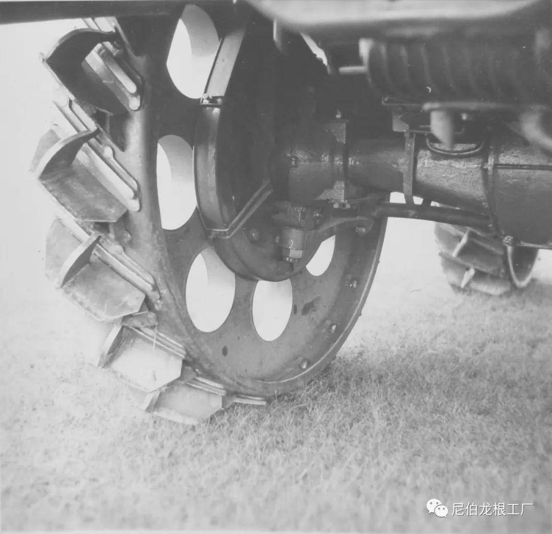 样车安装打孔钢轮进行测试,样车和量产阶段的大多数测试都是在工厂附近的草地和沼泽地里完成的。