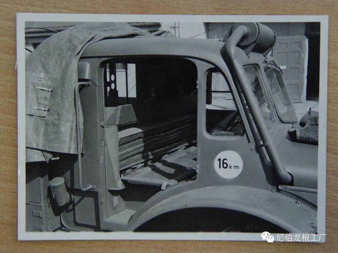 量产车,驾驶室两侧小角窗下喷绘了限速16公里的标识,从门洞处可以看到驾驶室的“大座”和卧铺隔板,靠背放倒后可以和后面的卧铺形成一个大通铺。驾驶室右下角的弯管是油箱注油口,在这张照片中,我们还可以观察到通气管是如何从动力室中引出,再和高处的附加空滤连接在一起的。这一辆的雨刷装在挡风玻璃上方。