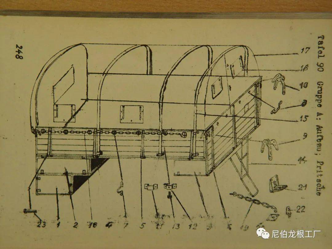 斯柯达RSO的货厢部分也很有意思,此物为钢木混合结构,中间下凹,两边抬高,为后翼子板和储物箱留出了空间。货厢有一个与驾驶室顶部几乎平齐的前挡板,后部和两侧的挡板可以向下放平。侧挡板备有接口,可以插上撑杆,顶起防雨篷布。按照需求不同,货厢可以运载4吨货物,也可以面对面坐下两排共计12名士兵。此外还有一种“卧铺”版本,货厢中布置了8个简易卧铺,分为上下两层,上层卧铺悬挂在前两支撑杆和前挡板之间——斯柯达RSO速度太慢,而且行驶起来太颠簸,用这东西抢运伤员恐怕不太合适,所以更合理的解释是让炮组成员们可以在行军途中躺下休息。由于货厢离地面较高,在车尾右后侧还布置了折叠式登车梯。